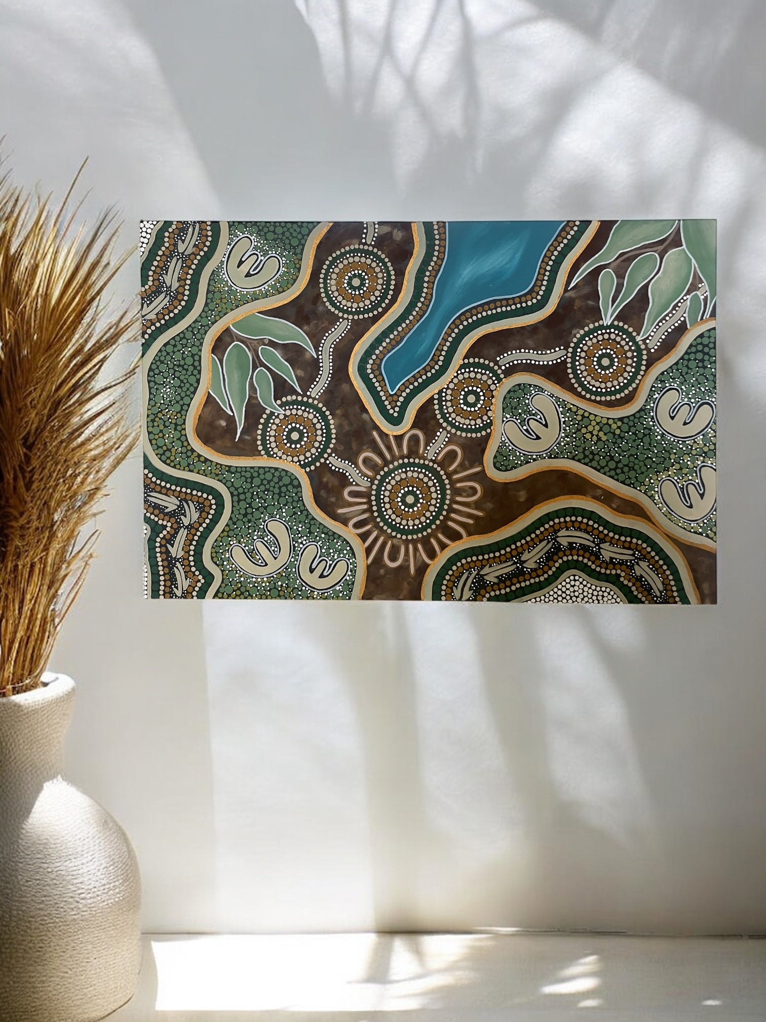 Looking to bring your own story to life through an artwork? I create timeless commissioned artworks highlighting your story and creating a personalised peice of aboriginal art. Handpainted with love and care, creating not only a beautiful artwork but a peice of aboriginal culture that connects on a deep level, for your space whether that be for your home, office or a gift to a friend or loved one.